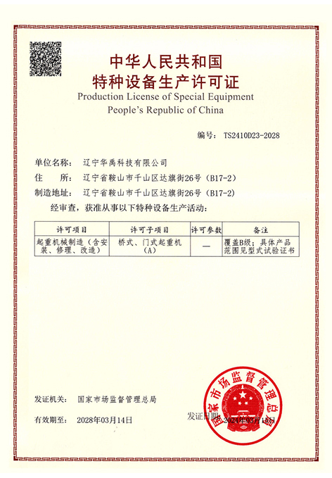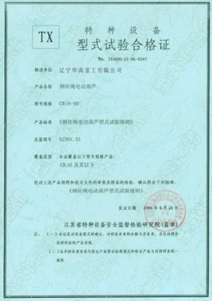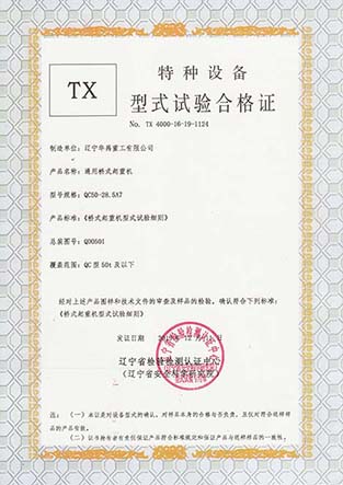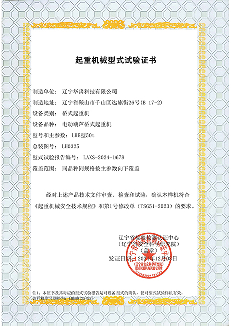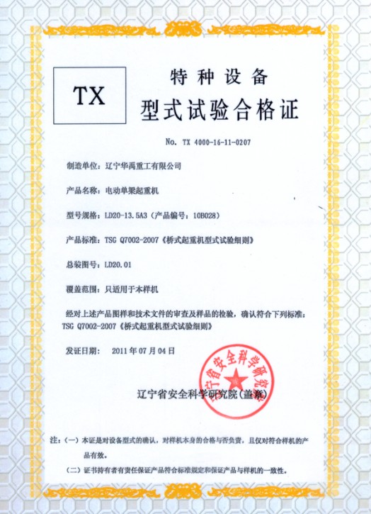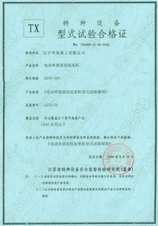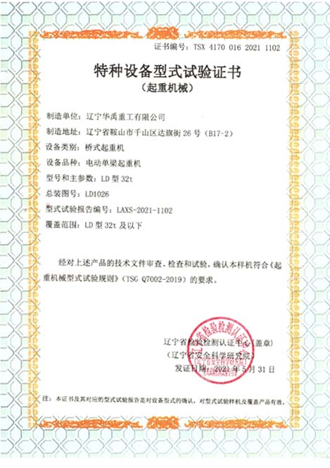 LDP電動(dòng)單梁型式試驗(yàn)合格證